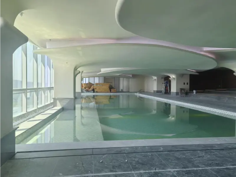 Para garantir conforto estável e usabilidade durante todo o ano, a instalação é apoiada por avançadosBomba de calortecnologia e eficienteAr condicionadosistemas. A solução integrada de controlo climático ajuda a manter um ambiente interior estável, garantindo a temperatura ideal para os espaços de ar e água na área de natação.